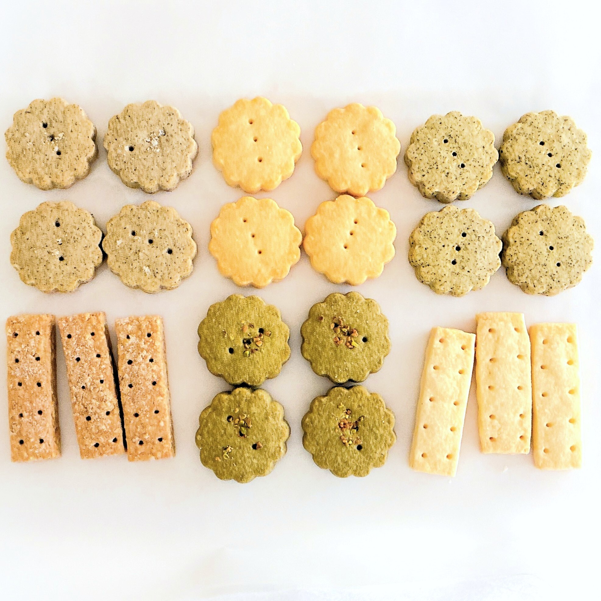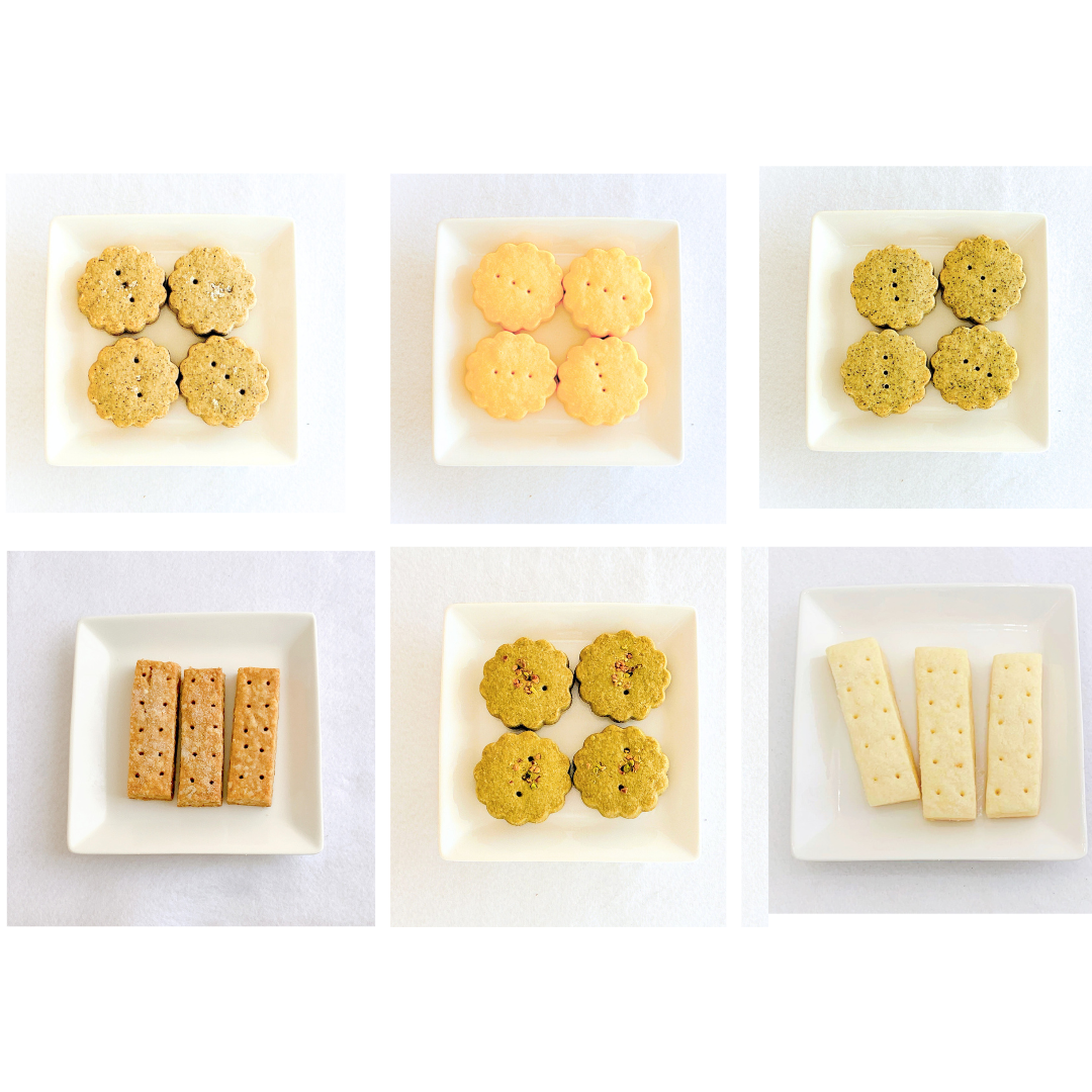 小さな花型のショートブレッド4袋、長方形のショートブレッド2袋。
